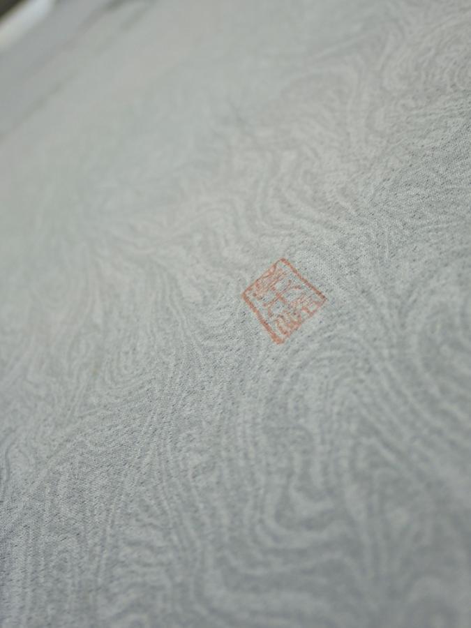 1A07z40 Japanese Kimono Silk FABRIC Suminagashi Ash gray 57.1x7.3