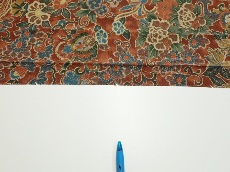 1A05z110 Japanese Kimono Crepe Silk FABRIC Flowers Red-Brown 67.7x14.8