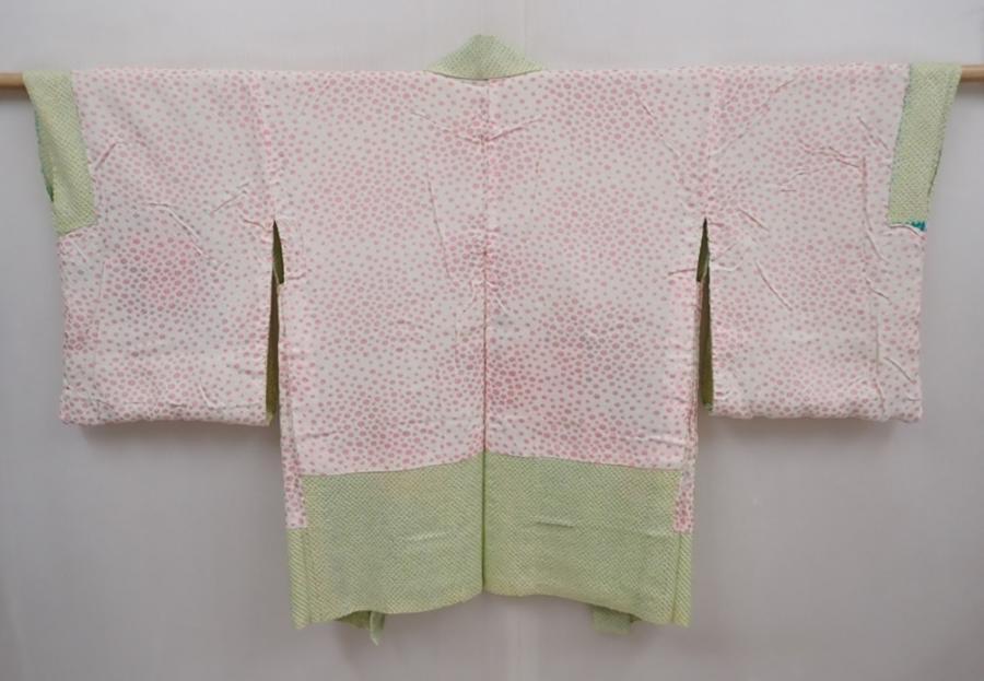 6319T11z440 Vintage Japanese Kimono Silk SHIBORI HAORI Peony Light green