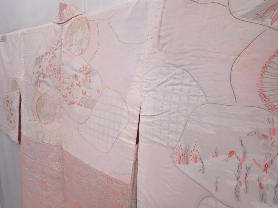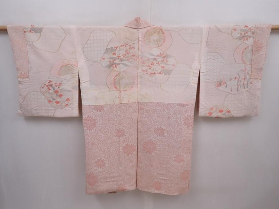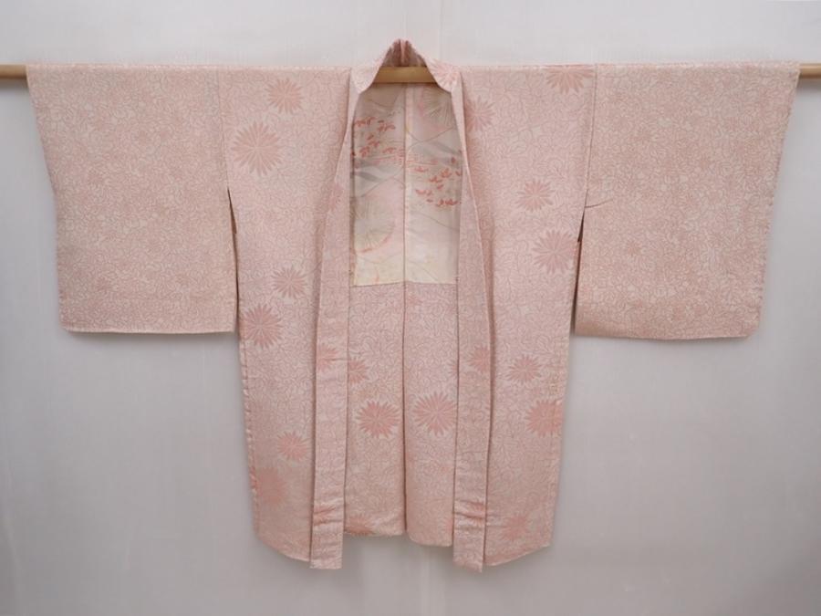 6319T13z600 Vintage Japanese Kimono Silk HAORI Chrysanthemum Off-white