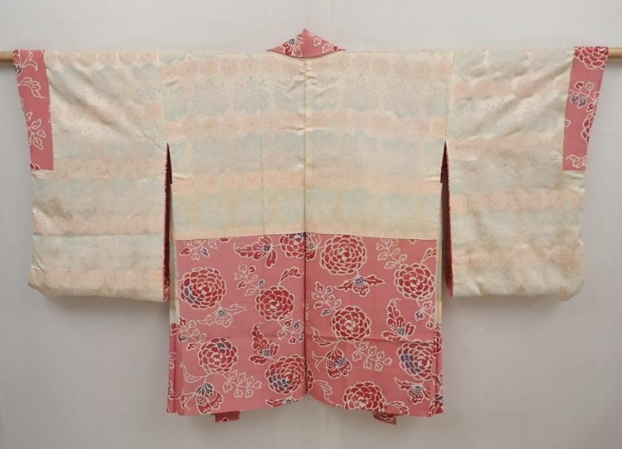 6415T02z590 Vintage Japanese Kimono Silk HAORI Flower Pink
