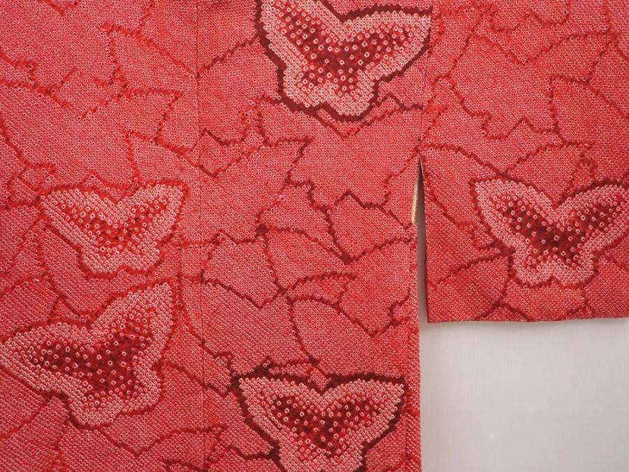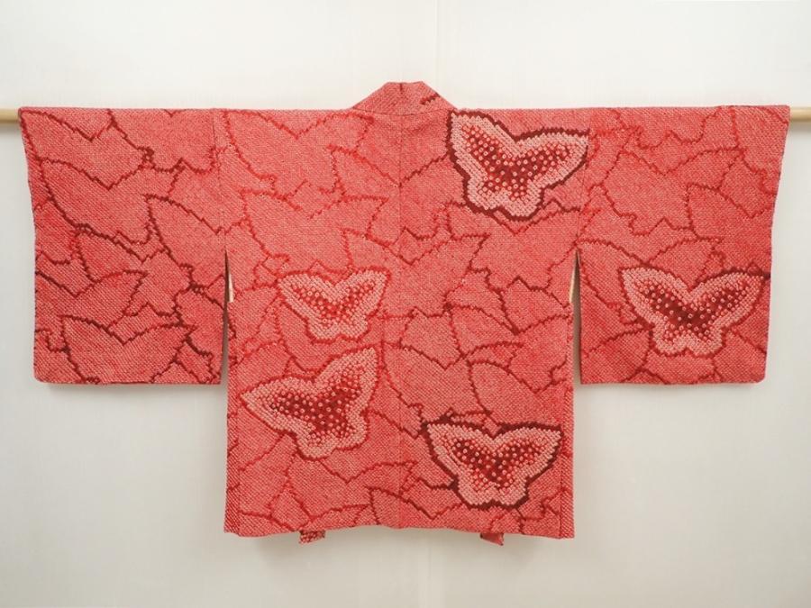 6415T08z480 Vintage Japanese Kimono Silk SHIBORI HAORI Butterfly Dark red