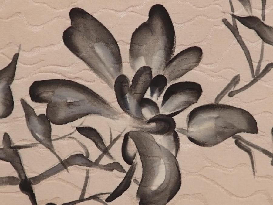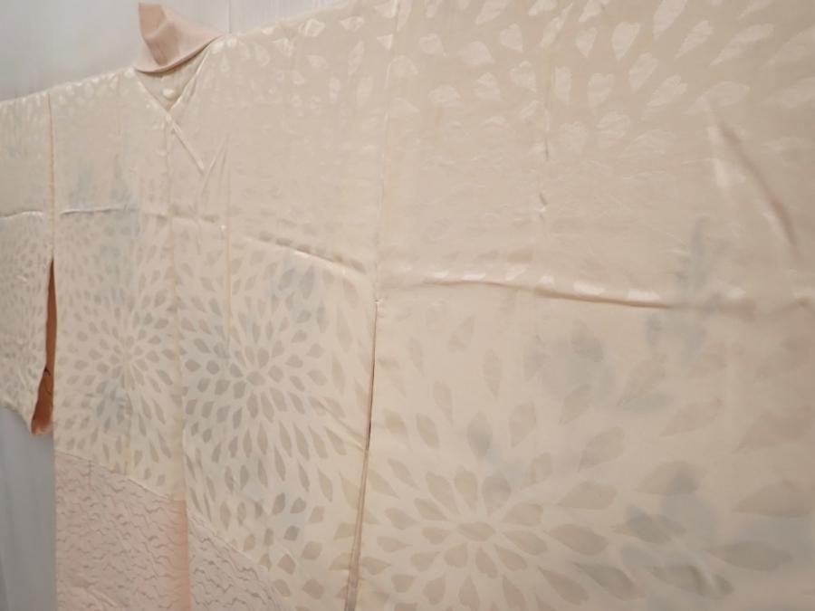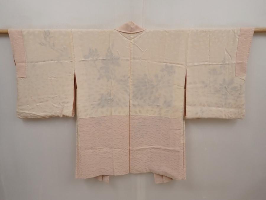 6415T10z640 Vintage Japanese Kimono Silk HAORI Flower Peach-Beige