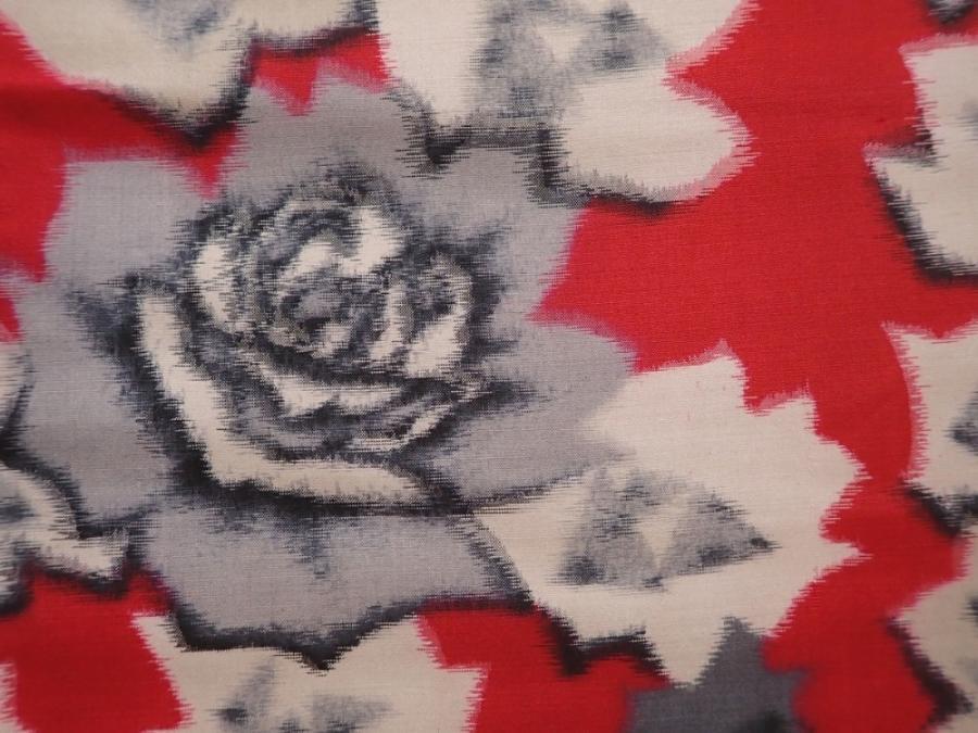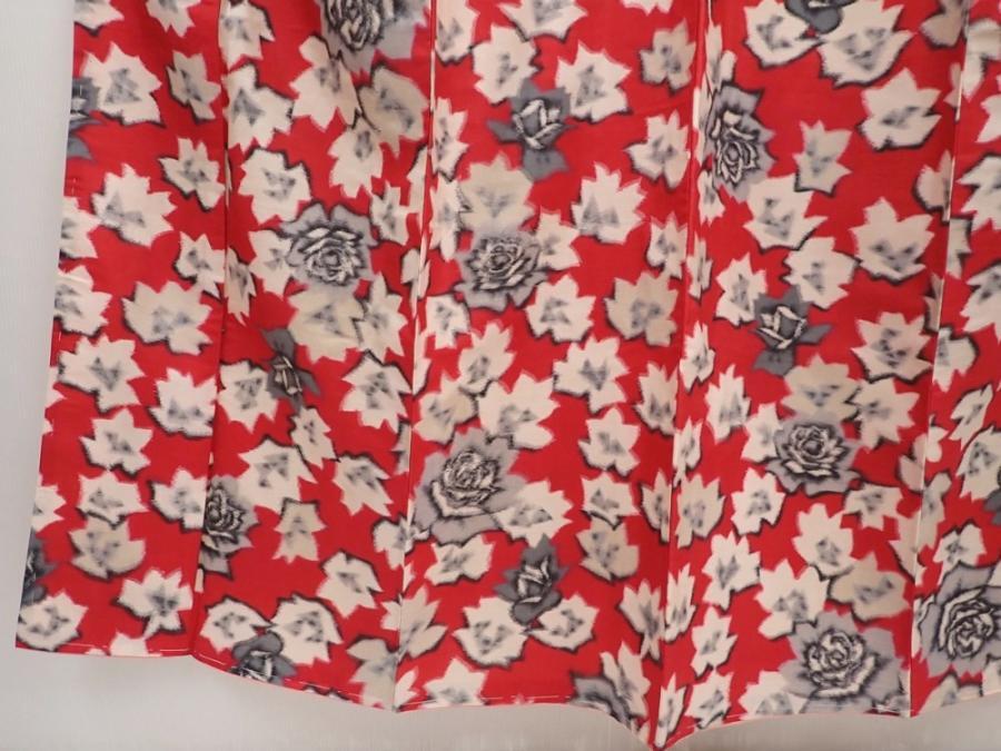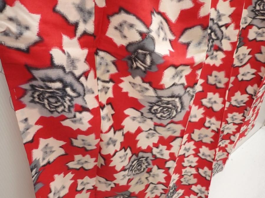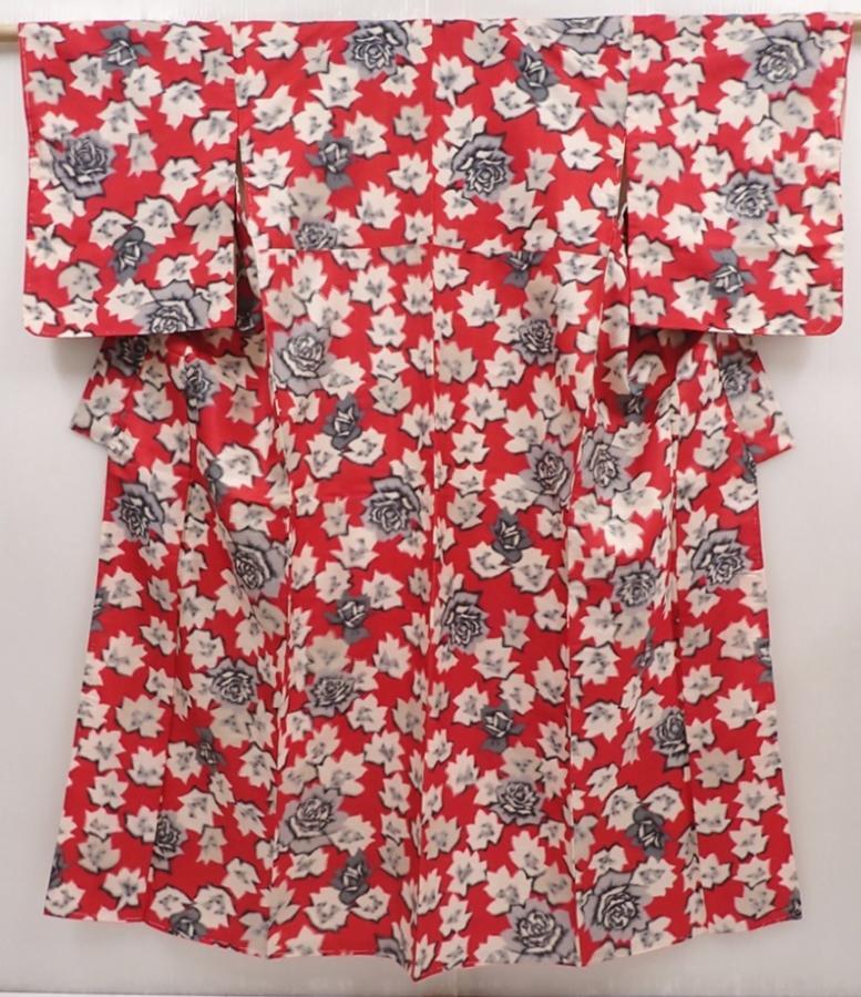 6415T12z580 Vintage Japanese Kimono Silk MEISEN KOMON Flower Dull red
