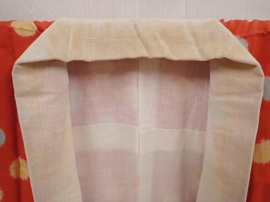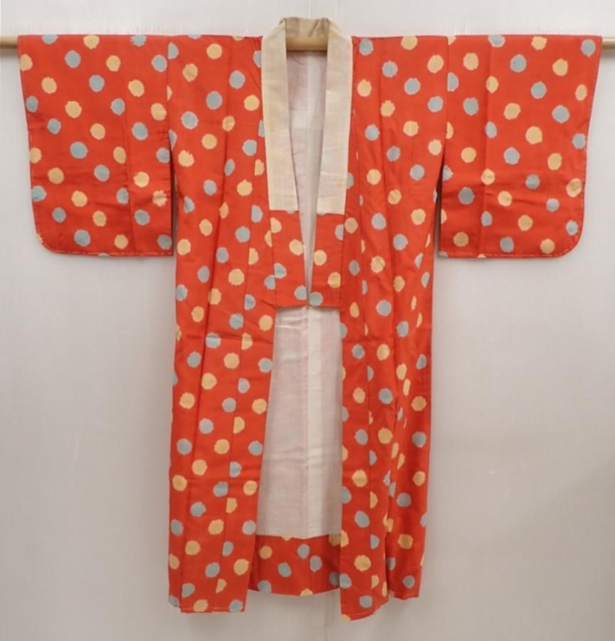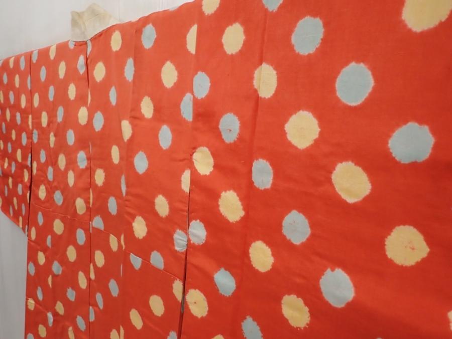 6416T05z480 Vintage Japanese Kimono Silk JUBAN Dot Orangered