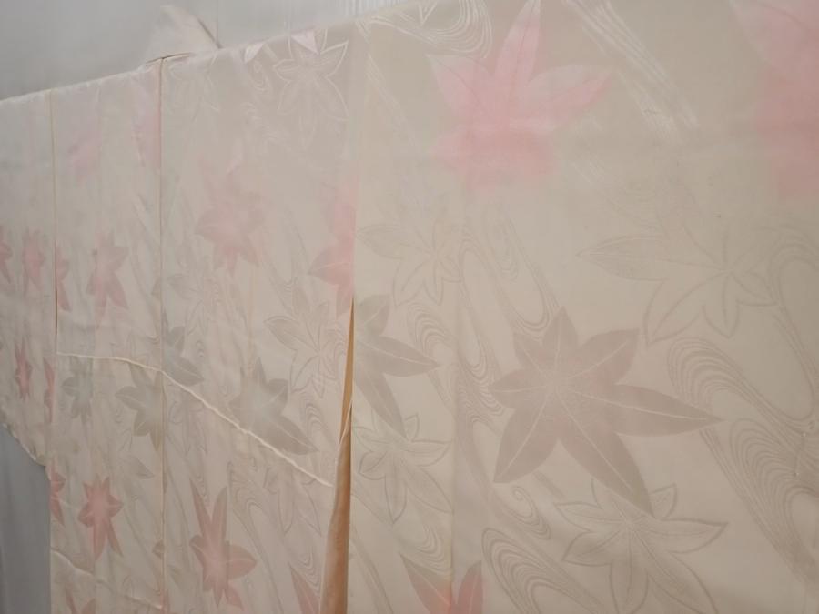 6416T07z500 Vintage Japanese Kimono Silk JUBAN Maple Light pink