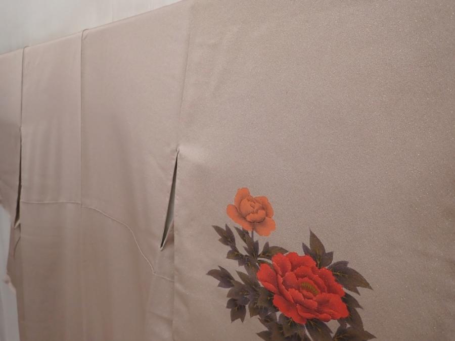 6416T10z990 Japanese Kimono Silk TSUKESAGE Peony Ash rose