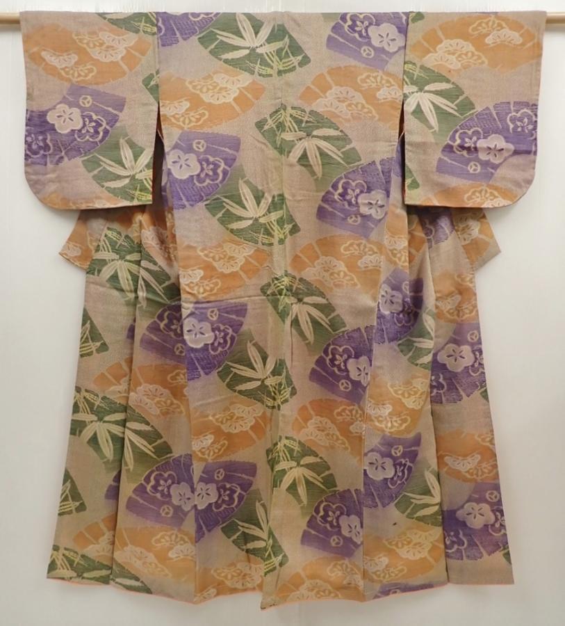 6416T12z760 Antique Japanese Kimono Muslin KOMON Jigami Dark champagne