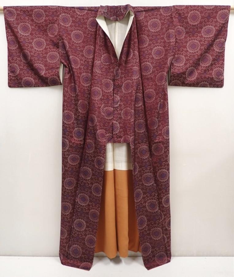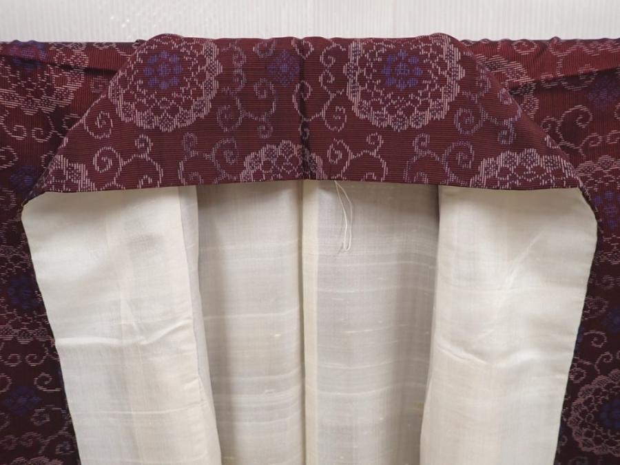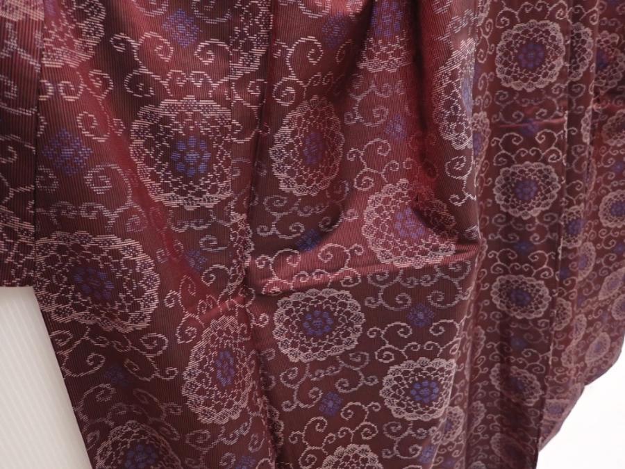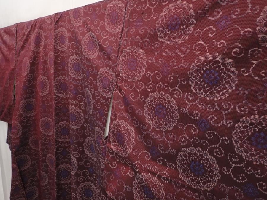 6416T13z630 Vintage Japanese Kimono Silk TSUMUGI Flower Purple-Brown