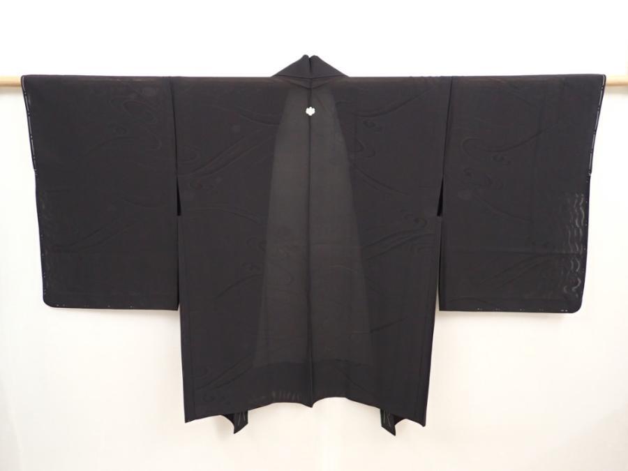 6417T03z340 Vintage Japanese Kimono Silk See through HAORI Stream Black