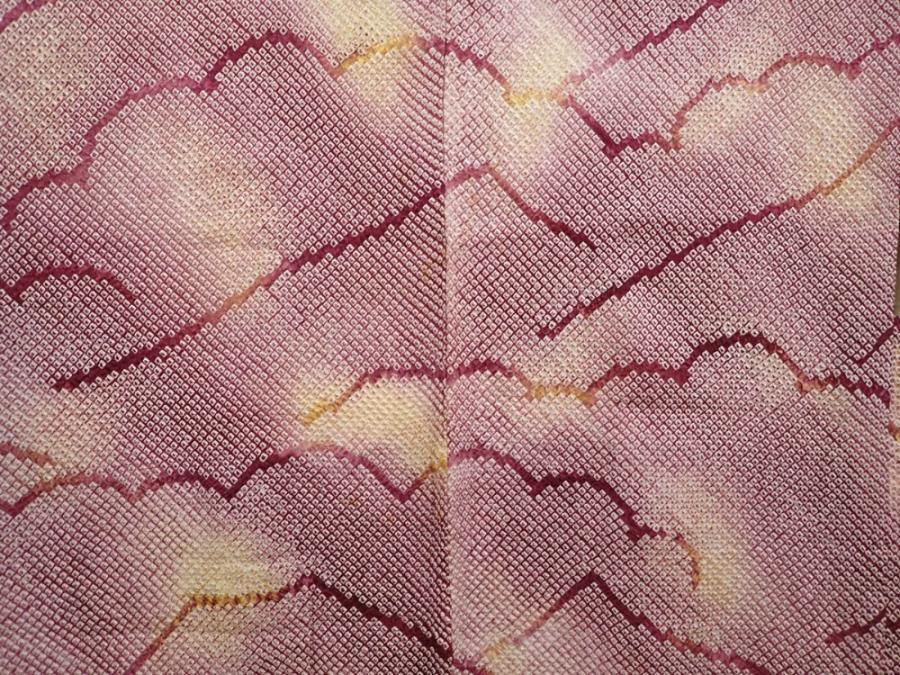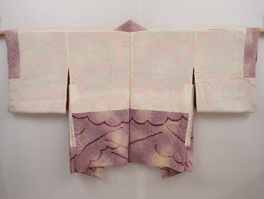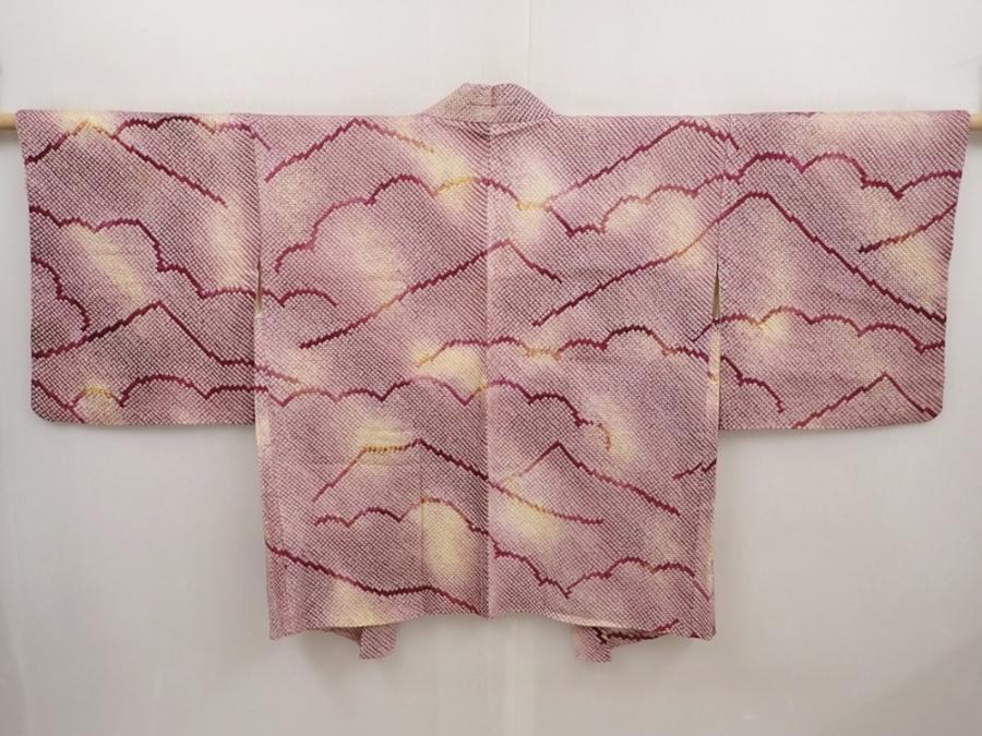 6417T05z440 Vintage Japanese Kimono Silk SHIBORI HAORI Mountain Dull purple