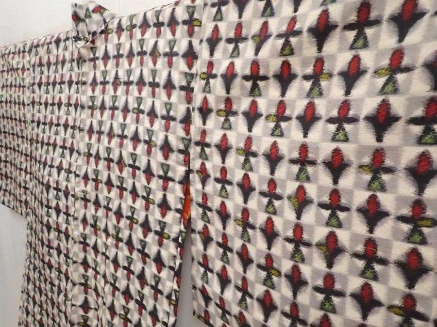 6417T06z420 Vintage Japanese Kimono Silk MEISEN HAORI Gray