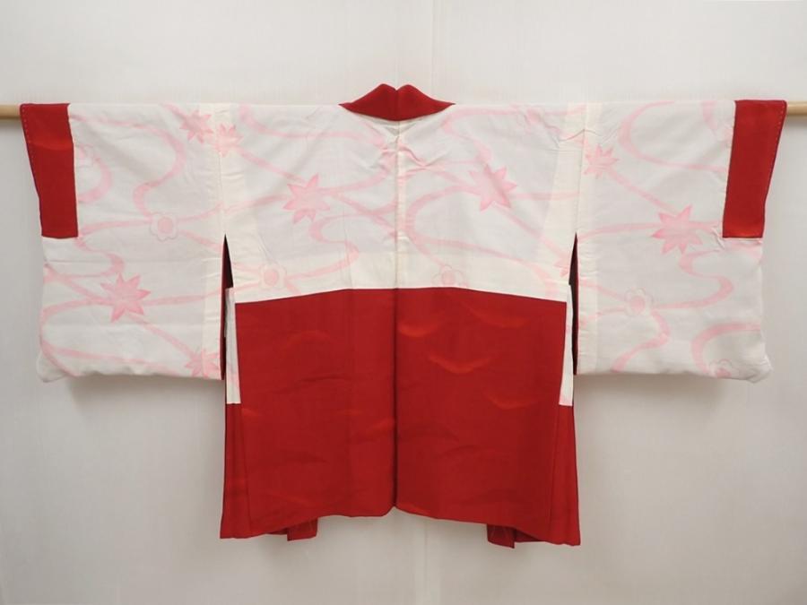 6417T08z560 Vintage Japanese Kimono Silk HAORI Dark red