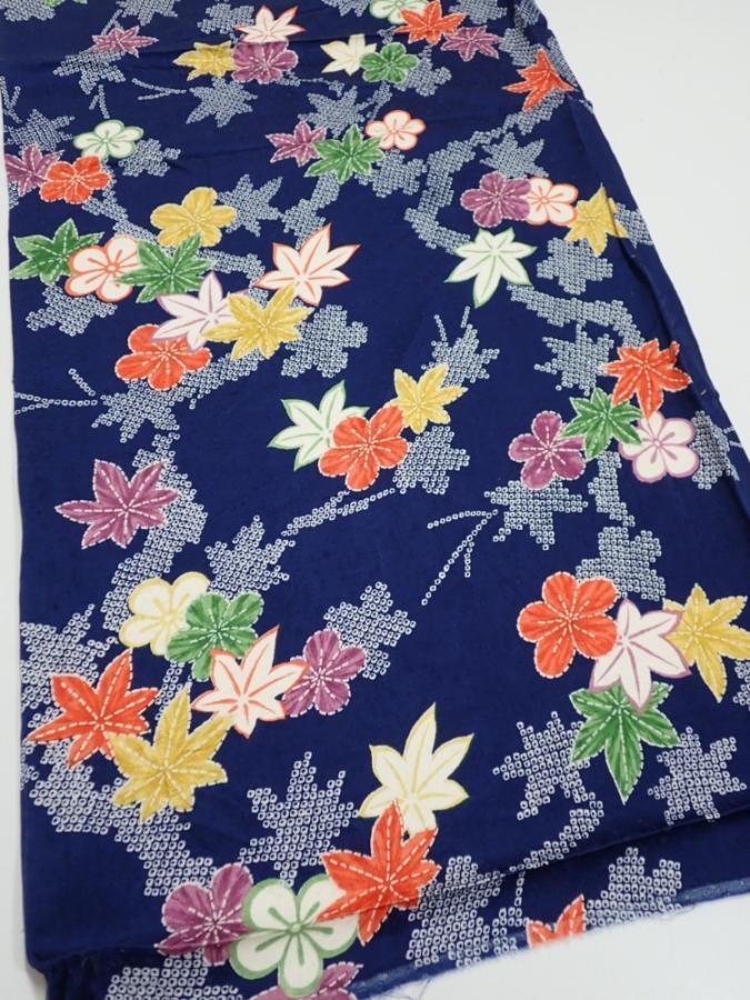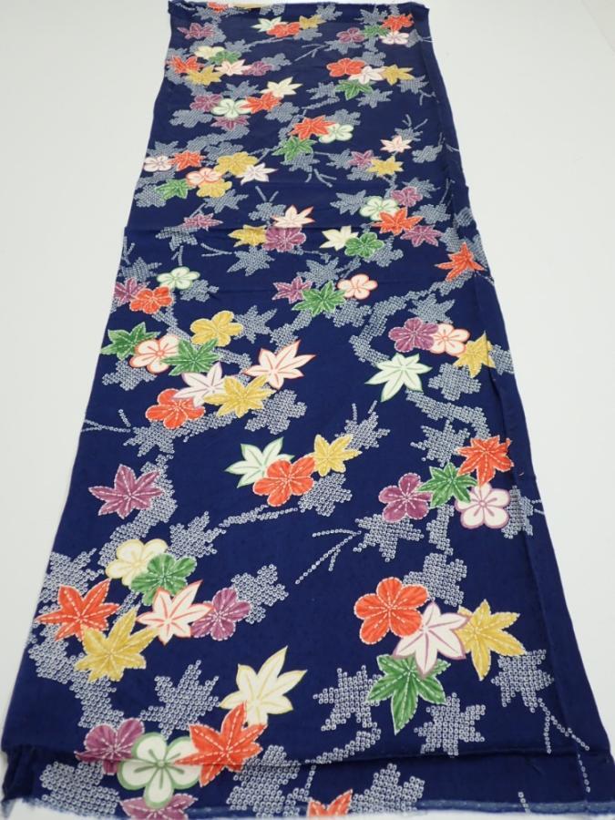 1B02z50 Japanese Kimono Silk FABRIC Maple Navy 40.9x14.6