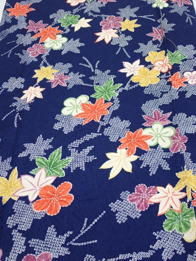 1B04z80 Japanese Kimono Silk FABRIC Maple Navy 65.4x14.6