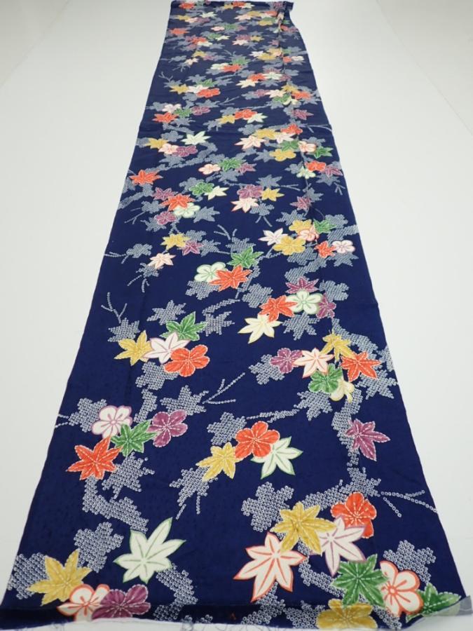 1B05z80 Japanese Kimono Silk FABRIC Maple Navy 63.0x14.6