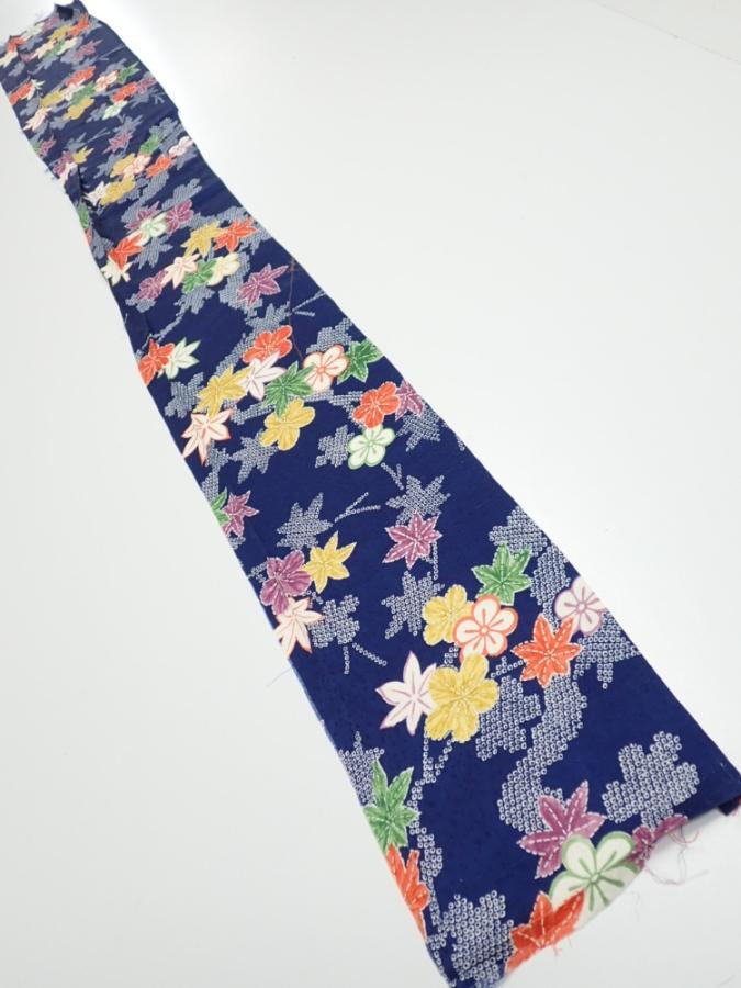 1B07z40 Japanese Kimono Silk FABRIC Maple Navy 58.3x7.3