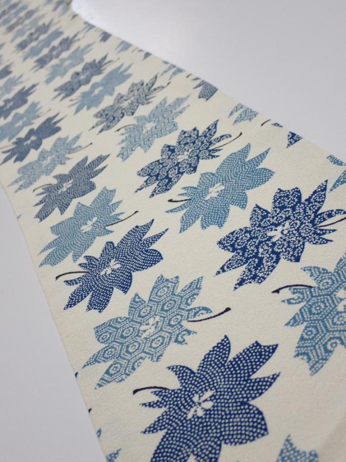 1B02z40 Japanese Kimono Silk FABRIC Flower Oyster White 53.5x6.9