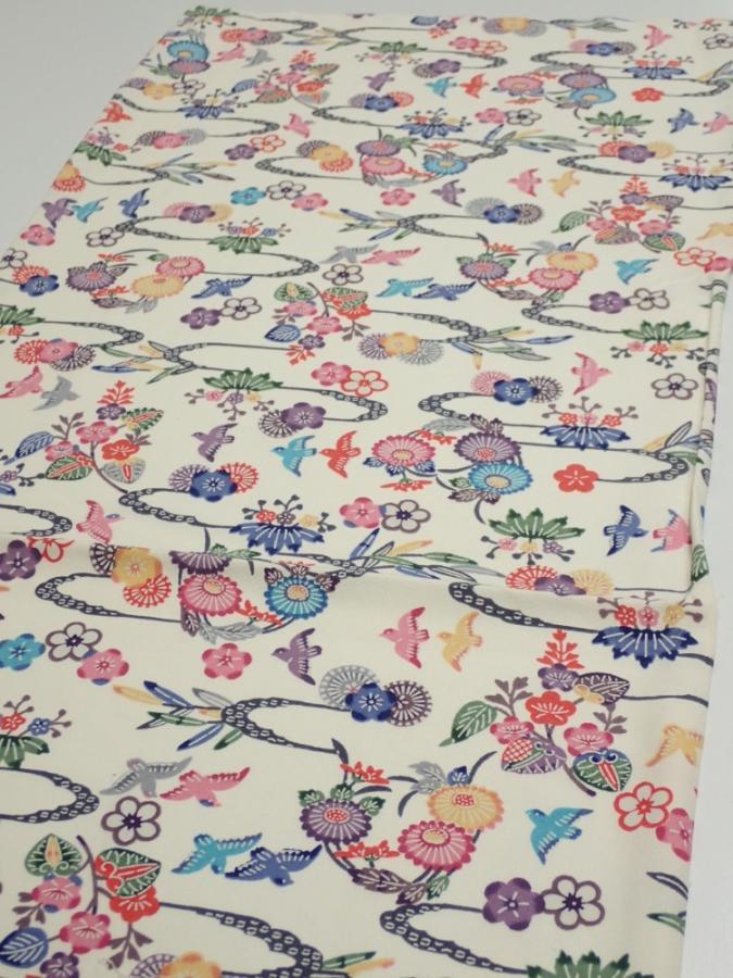1B01z50 Japanese Kimono Silk FABRIC Flowers Off-white 35.4x14.6