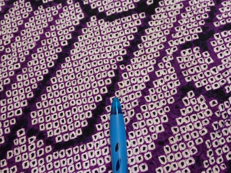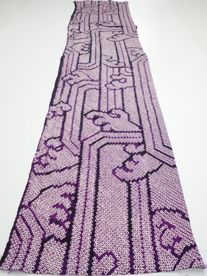 1B04z70 Japanese Kimono Silk SHIBORI FABRIC Wave Dark purple 60.2x14.2
