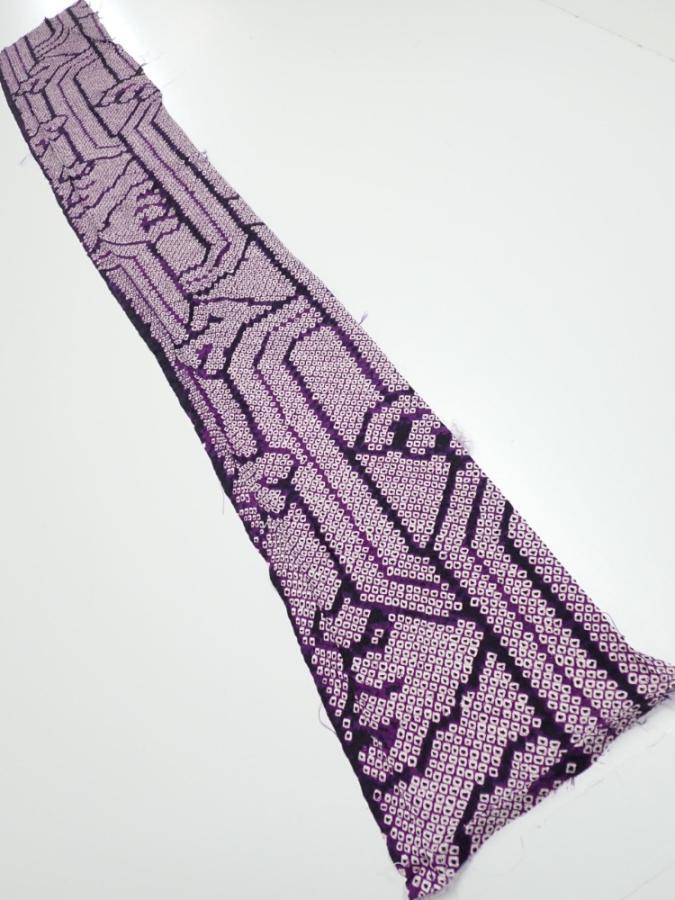 1B07z40 Japanese Kimono Silk SHIBORI FABRIC Wave Dark purple 55.9x7.7