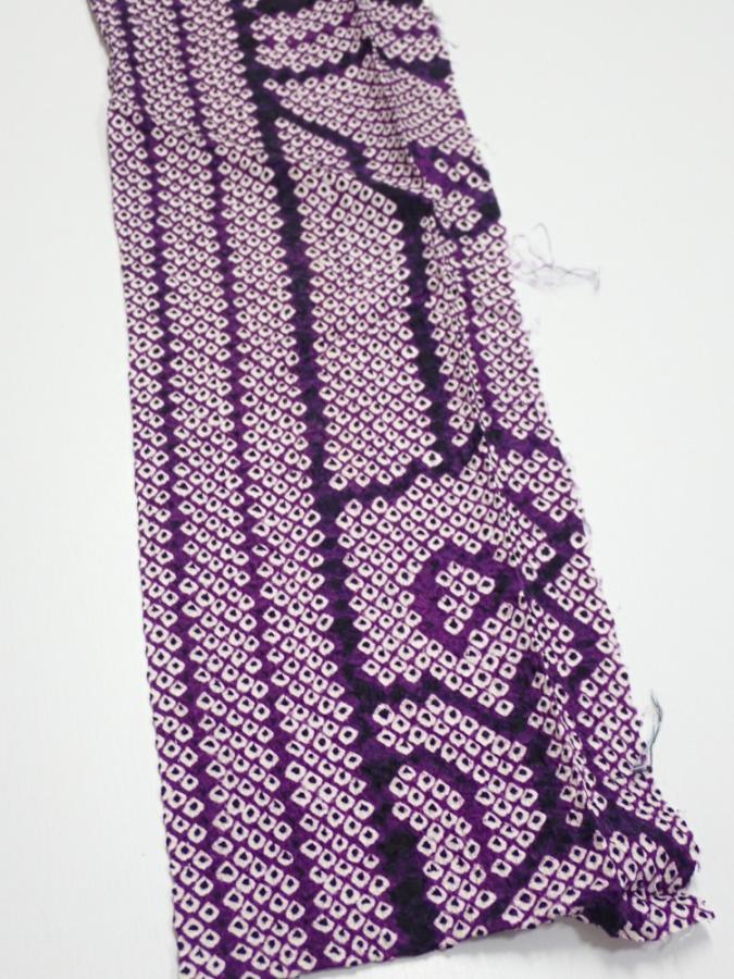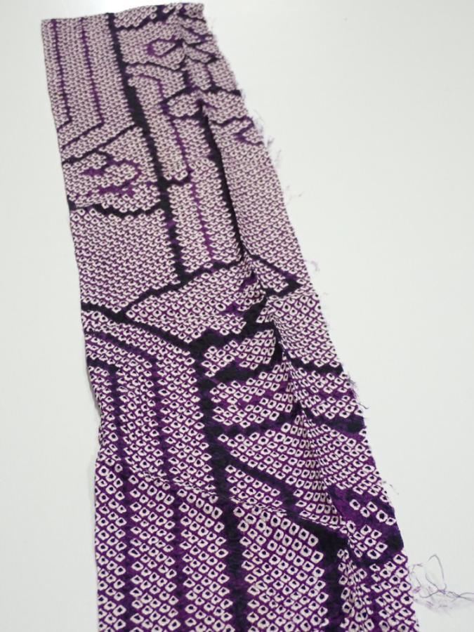 1B10z20 Japanese Kimono Silk SHIBORI FABRIC Wave Dark purple 37.0x6.9