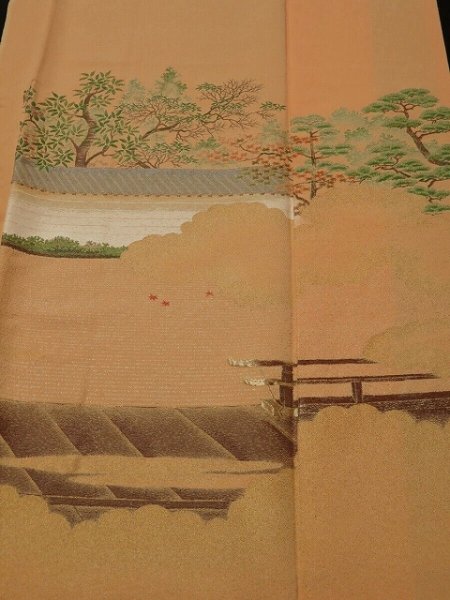 3N01z120 Japanese Kimono Silk FABRIC Light apricot orange Garden 45.7"