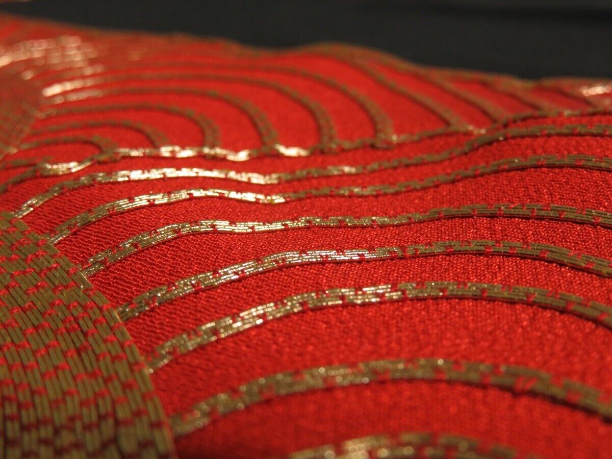 3C02z90 Japanese Kimono Silk FABRIC Black Seigaiha 48"