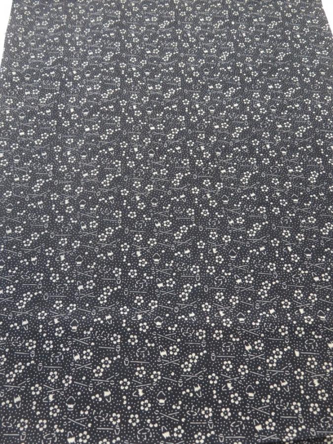 2M01z60 Japanese Kimono Silk FABRIC Flower Black 38.6x13.8