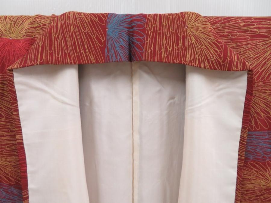 3002T03z950 Japanese Kimono Silk KOMON Chrysanthemum Red-Brown