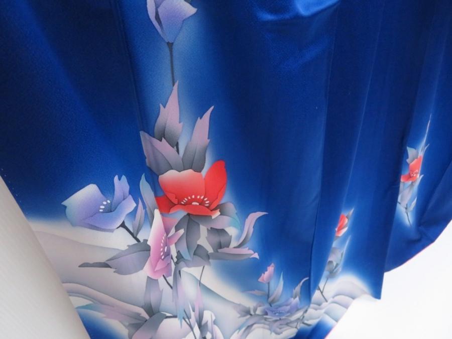 3922T01z910 Japanese Kimono Silk TSUKESAGE Flower Royal blue