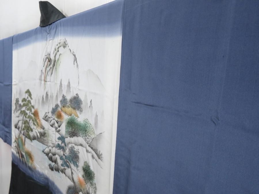 4213T08z500 Vintage Japanese Kimono Silk Men's OSHIMA HAORI Scenery