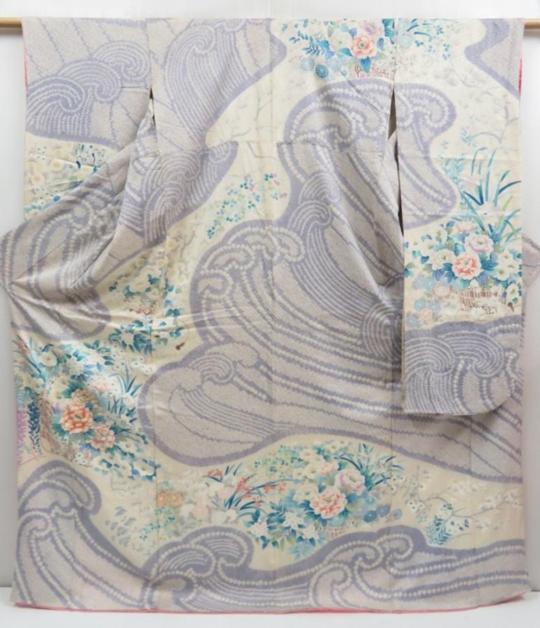 4517T05z1160 Japanese Kimono Silk FURISODE Peony Lavender